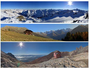 A panorama — or panoramic photo — is usually made by stitching several pictures taken with the same camera into one.