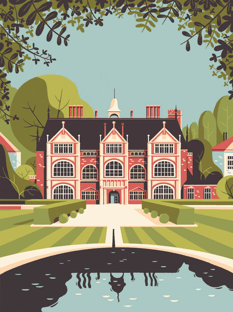 The lanes in the grass are like guides to draw you into the building. It also creates a beautiful symmetrical vibe.