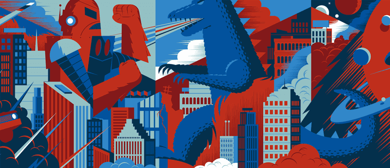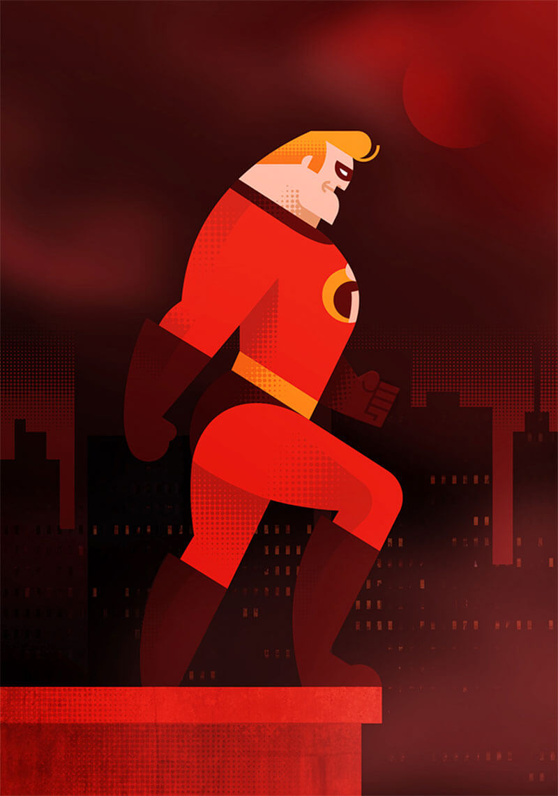 Illustration created for The Pixar Times. Everybody loves a hero. Love how the shadows are done, and the pattern effects.