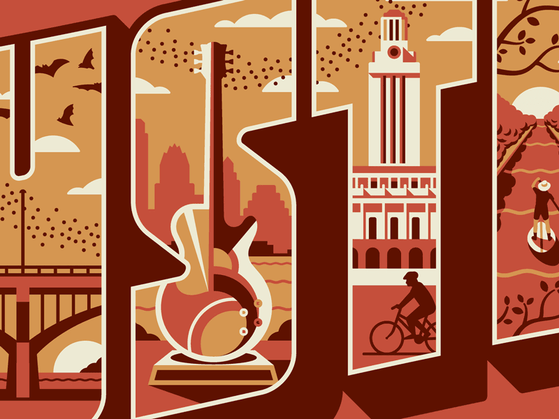 A sneak peek of a new print the crew at DKNG is working on. Looks like Austin to me. Love the effect of the letters used as masks. How the few colors are applied is just sublime!