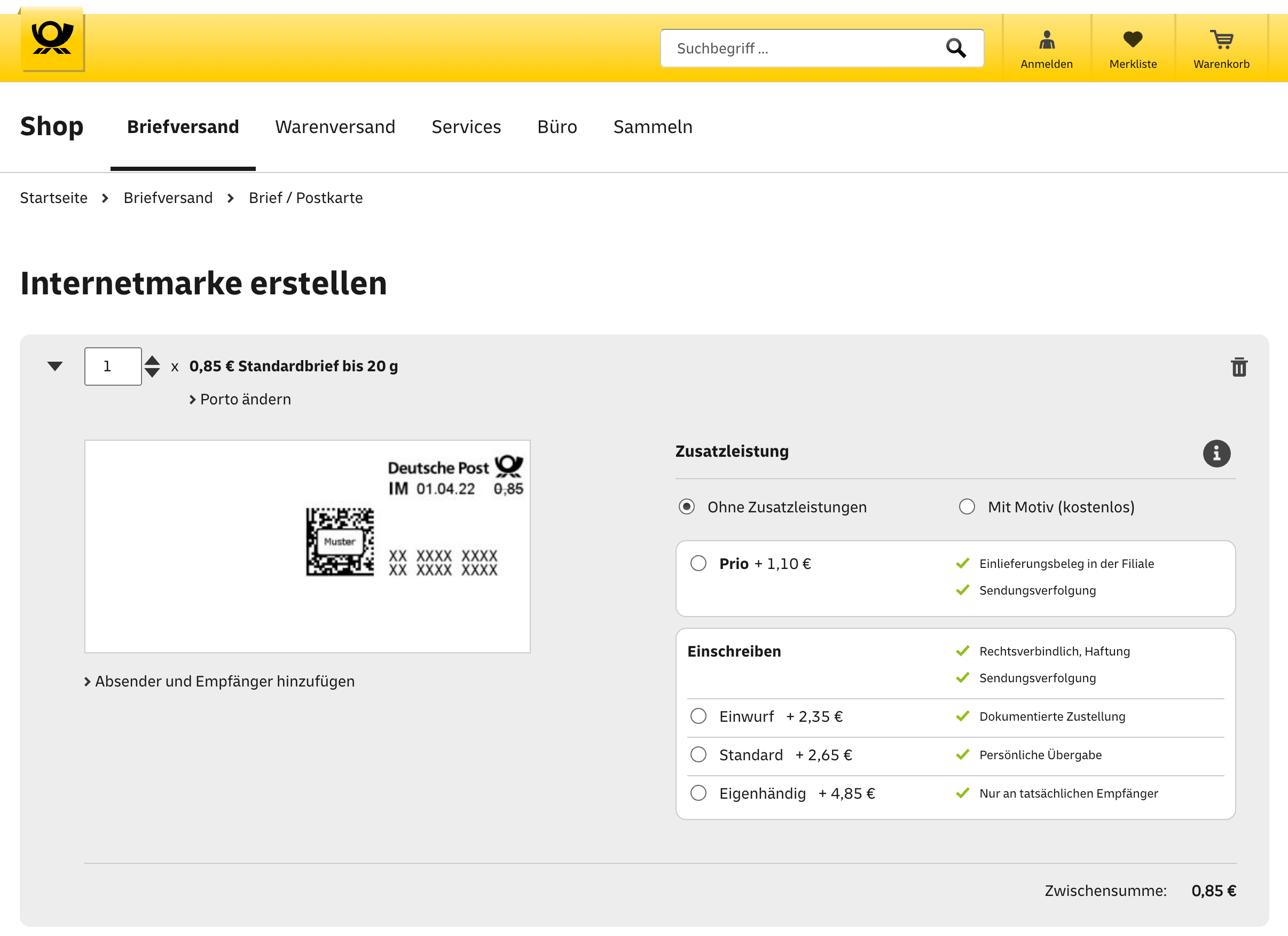 DHL displays the breadcrumbs under its primary header image. While it does fit the overall design of the page, users often dismiss banner-alike images instinctively, mostly because they don’t find anything useful there. “Standard shipping” does appear as some sort of title, yet it doesn’t show up in the breadcrumbs.