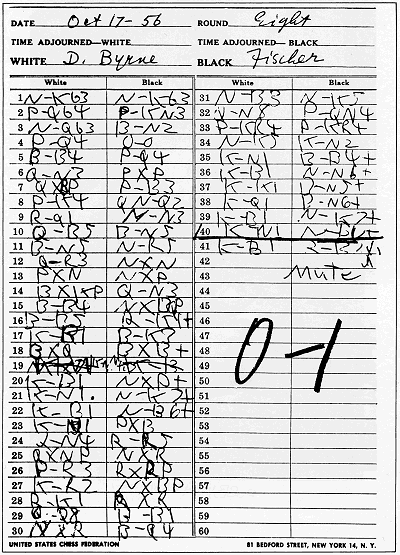 Wait a second. Isn’t 1956 the year when a 13-years old Brooklyn school boy Bobby Fischer enter his first major chess tournament and famously outfoxed a chess master Donald Byrne with bold, surprising moves? The game has been discussed in chess books and collections and was famously proclaimed as the “Game of the Century”. Could it be that our character is studying exactly that game?
