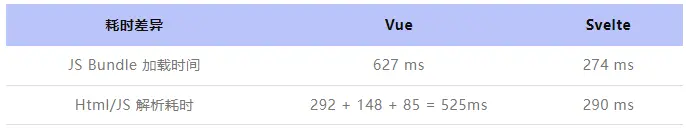 - Html/JS解析執行更快:由於 Svelte 幾乎無運行時,因此在執行相同業務邏輯時,解析執行耗時更短。並且在解析執行過程中,沒有二次加載更多的首屏 JS、CSS 資源,因此整體的解析執行速度更快。