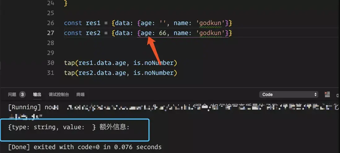 log(`${level}`, `{type: ${typeof value}, value: ${value} }`, `額外信息:${error}`)