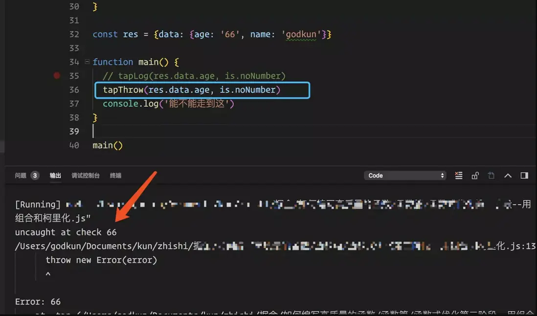 // 開啓異常忽略,使用 console.log 的 tapThrow 函數