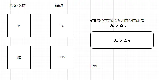 如果 「v維」 這個字符串放到內存中就是 0x767ef4。問題來了,計算機怎麼知道,幾個字節代表一個字符呢?是 0x76呢?還是 0x7ef4 呢?還是 0x767ef4?