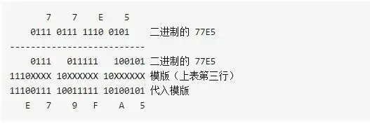 這就是將U+77E5 按照 UTF-8 編碼為字節序列E79FA5 的過程,反之亦然。