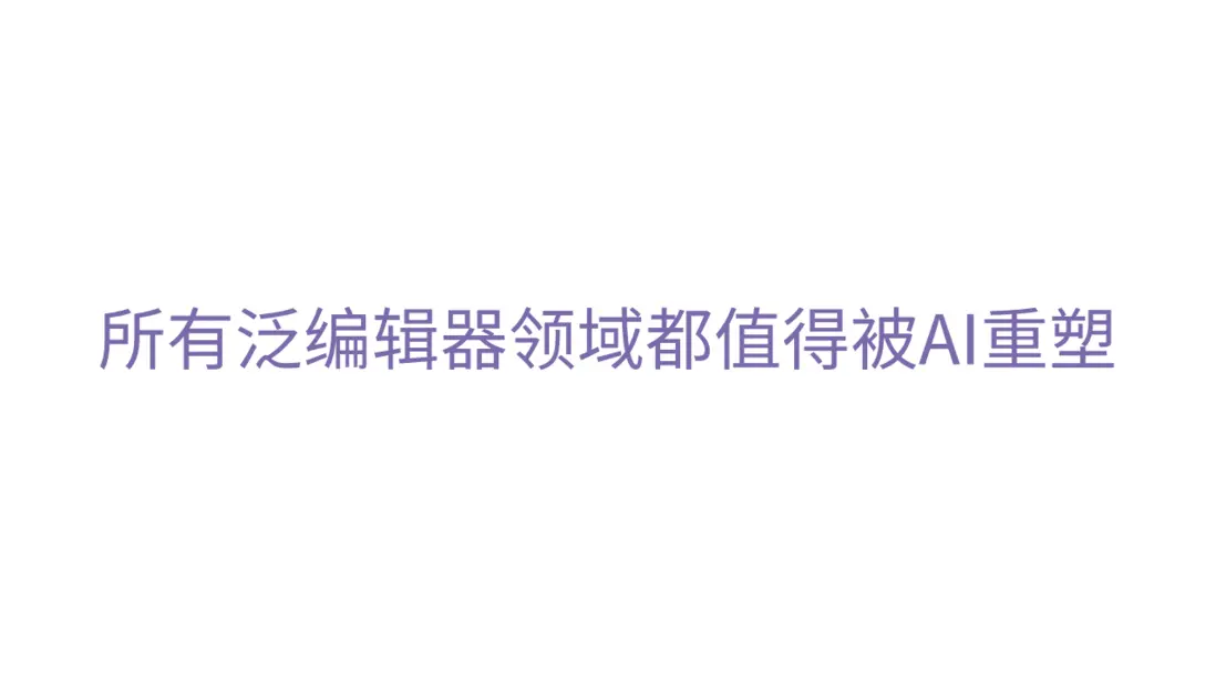 “泛而後能悟,化而後能得”,在有了遷移能力之後,依託現有之優勢去與不同領域方向進行融合。舉個例子,當下IT行業算得上還在上升勢頭的當屬AI領域,在如今“人人皆談大模型”的時代,前端領域也出現了諸多實踐及方向,之前幾乎淡出各位工程師視野的方向如今也被重新提起,比如:“AIGC+低代碼”、“AIGC+IDE”等。個人認為,“所有泛編輯器領域都值得被AI重塑”,這裏的“泛編輯器”包括但不限於:低代碼/無代碼編輯器、文檔編輯器、繪圖編輯器、代碼編輯器等。