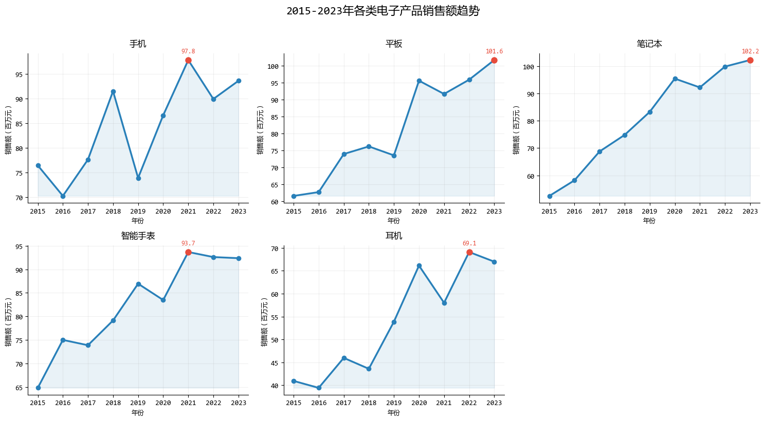 - 每個子圖聚焦一個產品,避免線條交錯