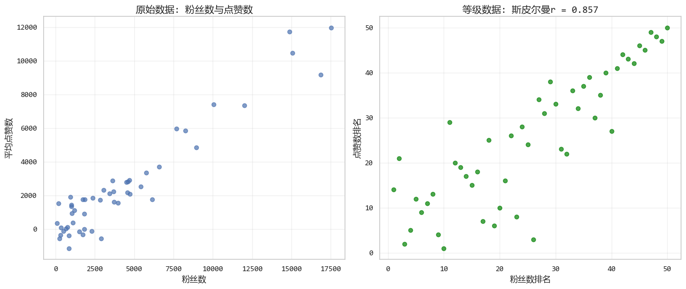 | 肯德爾相關 | 有序數據,小樣本 | 適合等級數據,解釋直觀 |