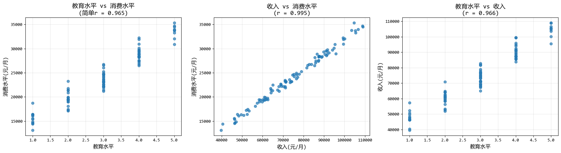 下面的示例中,我們先排除收入影響後,分析教育水平與消費水平的關係。