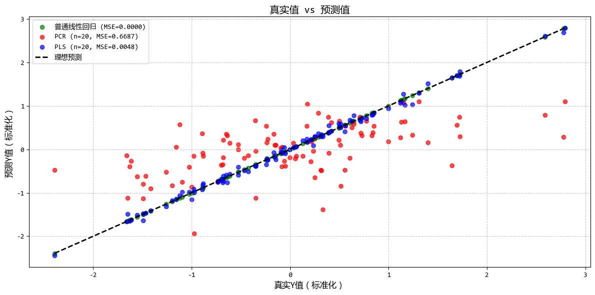 - 特徵數 > 樣本數,或特徵嚴重共線性: 必須上正則化手段,用 嶺迴歸、Lasso、ElasticNet,或者降維類的 PCR/PLS。