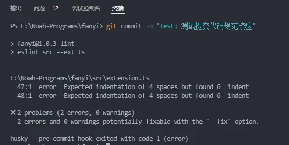 可以看到,不符合 Eslint 校驗規則的代碼是沒法提交的;