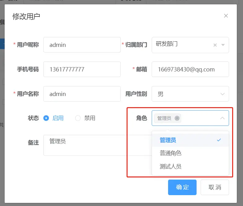 通過給用户分配角色來實現權限分配:這是最常見和最基本的方式,通過勾選用户擁有的角色來控制用户擁有的權限。