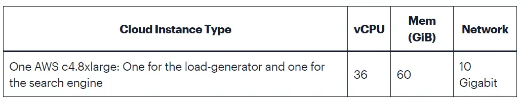 通過數據集導入索引數據後,官方使用運行在專用負載生成器服務器上的 32 個客户端啓動了兩個詞的搜索查詢。