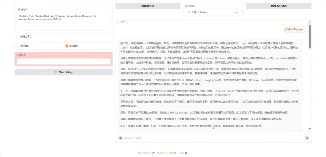 我們詢問“什麼是LazyLLM”,運行結果如下: