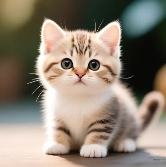 你好!這是一隻小貓。它看起來非常可愛,毛茸茸的,眼睛大大的,背景是模糊的色彩,突出了小貓的細節。這樣的圖像通常能讓人們感到温暖和愉快。你想了解更多關於小貓的信息嗎?