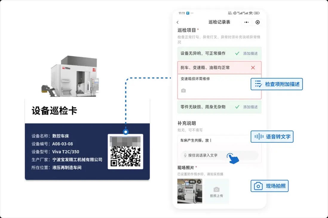 這種做法避免了“兩頭跑”“重複填”的問題,讓“點檢+上報”合併為一次掃碼動作,既提升效率,又確保異常能及時上送。