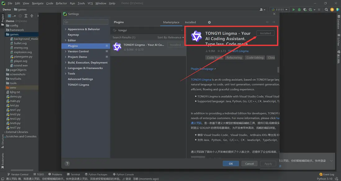 1.通義靈碼插件。