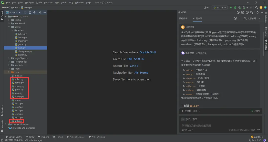 ✨通過這次體驗,大家是否感受到AI的強大和便捷。無論你是編程新手還是有經驗的開發者,AI程序員都能為你提供極大的幫助,提升你的開發效率。希望這次分享能激發更多人嘗試編程,感受創造的樂趣!趕快動手試試吧,説不定你也能輕鬆開發出屬於自己的遊戲哦!(為了增加趣味性,我就不附件代碼了!自己體驗吧)