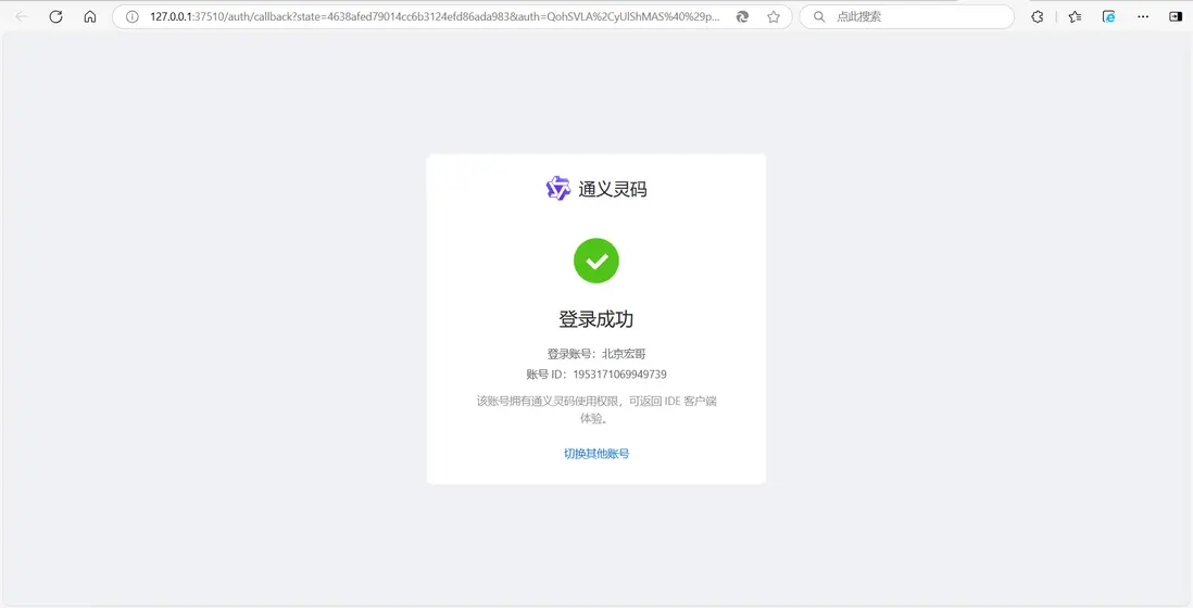 6.通義靈碼插件登錄成功,如下圖所示: