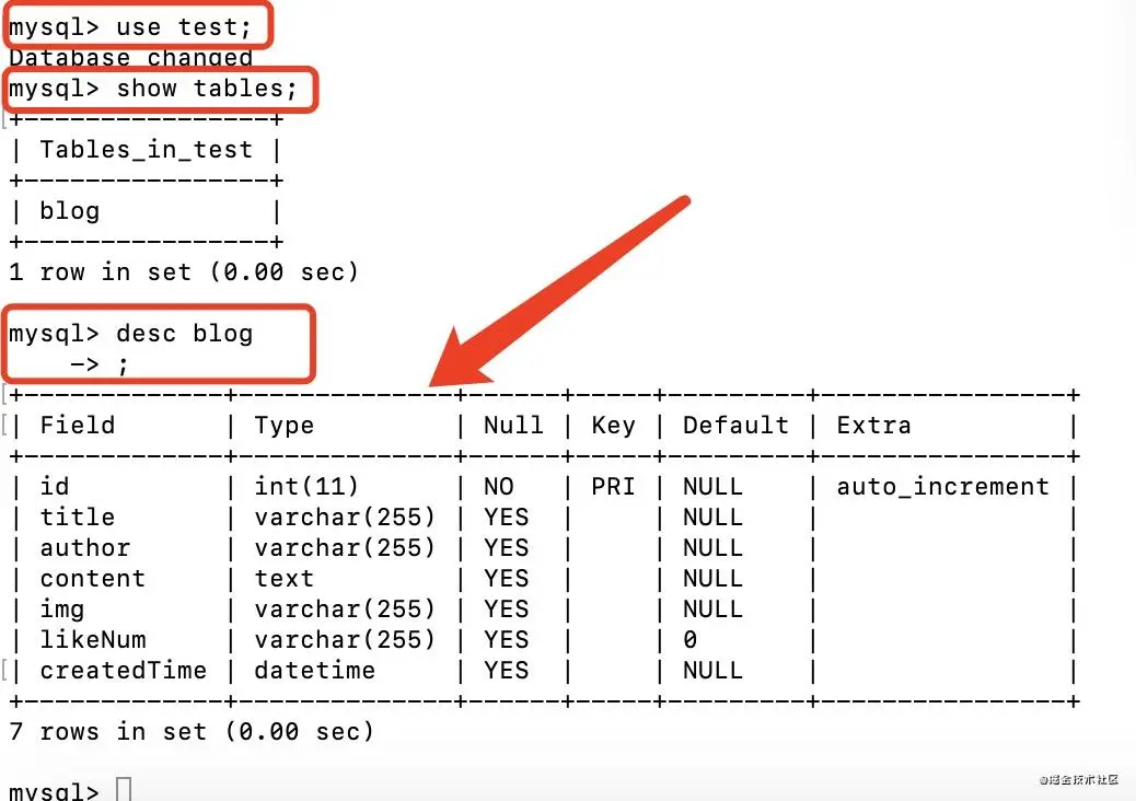 //1. 創建數據庫 test (所有命令行以分號結束)