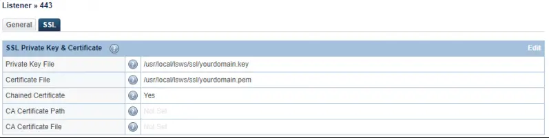 在控制面板環境中,LSWS將讀取Apache配置。只要您在Apache配置中正確設置了SSL證書,LSWS就應該以相同的方式工作。