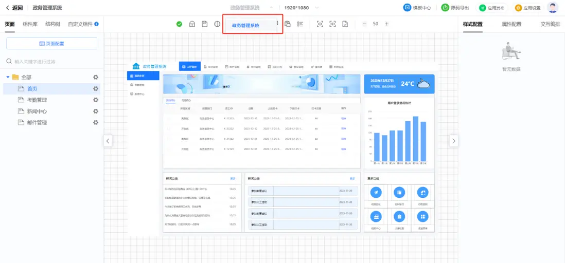 交互編排就是給組件配置事件。通過給不同的組件配置不同的事件來實現頁面的動態交互效果;例如:點擊某個按鈕就進行頁面的跳轉、點擊按鈕就有彈窗彈出。