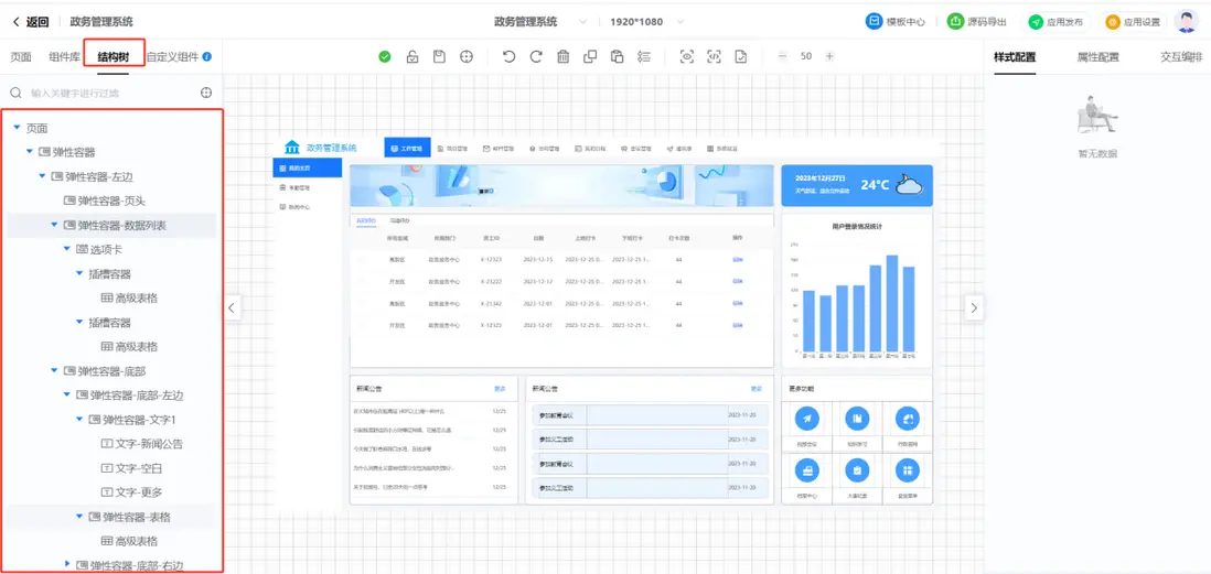 下面介紹的就是浮木雲的基礎概念了,有:應用、子應用、導航、頁面、畫布、組件、交互編排、動作卡片、屬性配置、樣式配置、結構樹、自定義組件、源碼導出、應用發佈等。