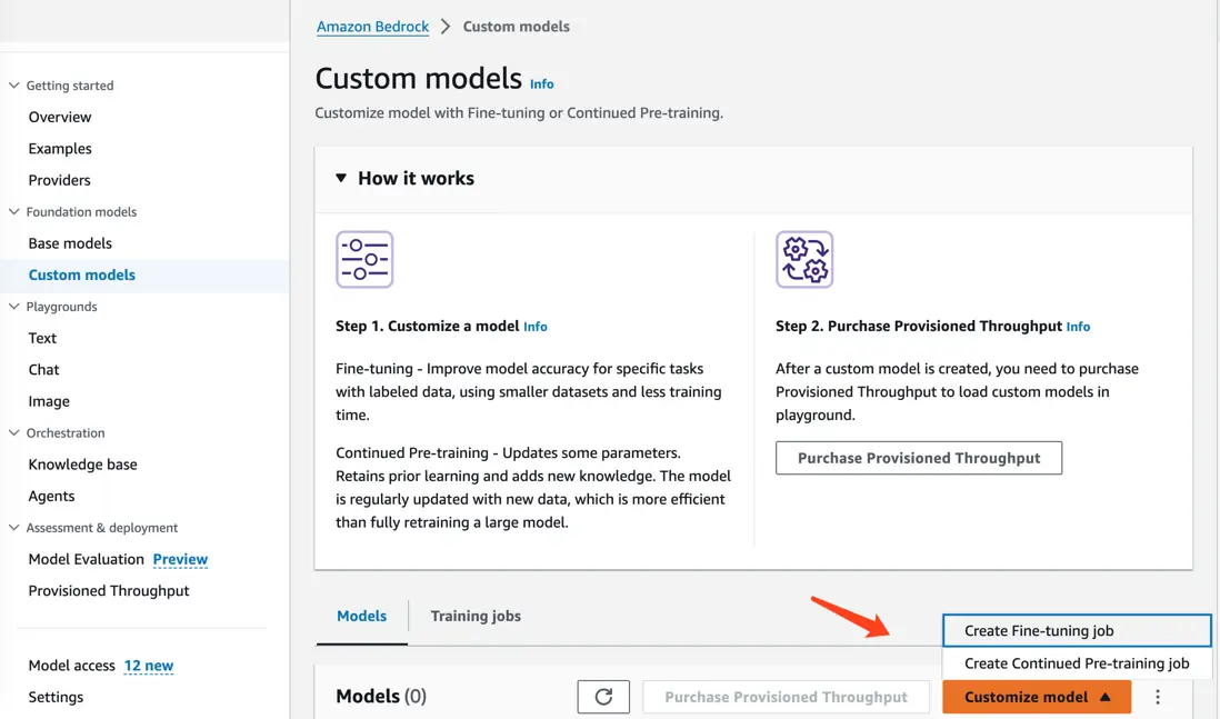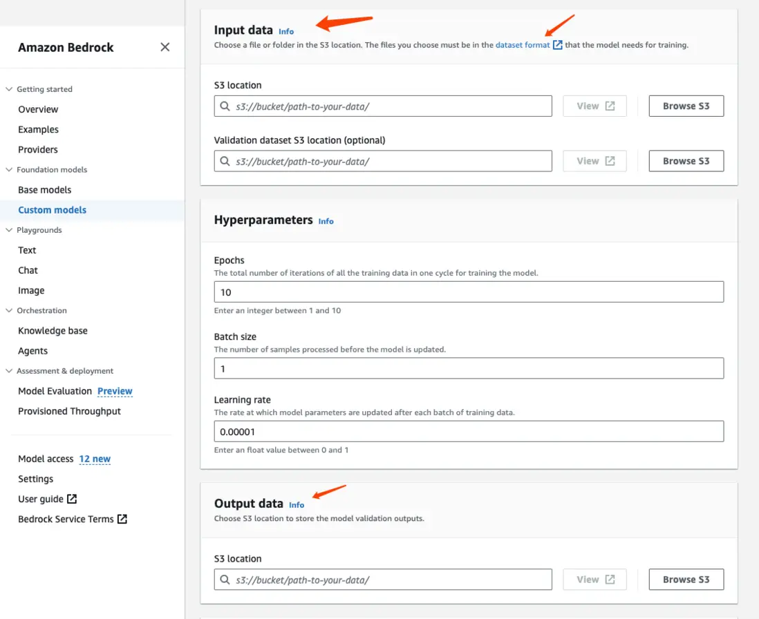 相較於我們平常用的 ChatGPT3.5、4 兩代通用模型, 亞馬遜提供了可定製性、可微調,可以使用保存在雲上語料庫、知識庫進行訓練(fine tunning)。