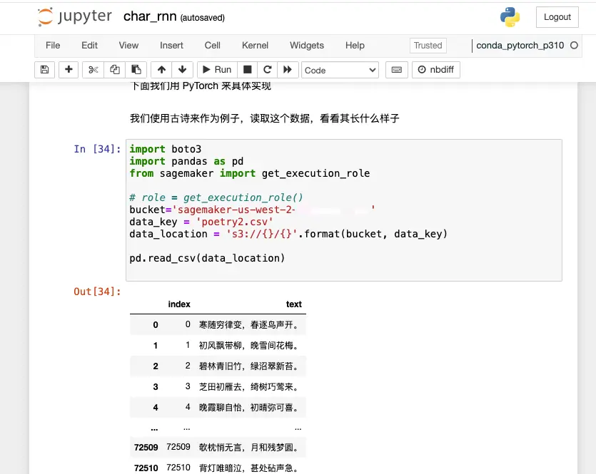 通過如上代碼,説明 SageMaker 是和 S3 打通了的。只需要配置好數據權限,數據分析人員就能自己拿數據進行分析工作了。