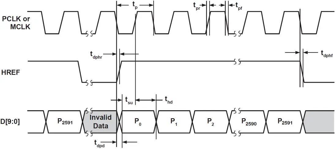 PCLK,即像素時鐘,一個PCLK時鐘,輸出一個像素(或半個像素)。