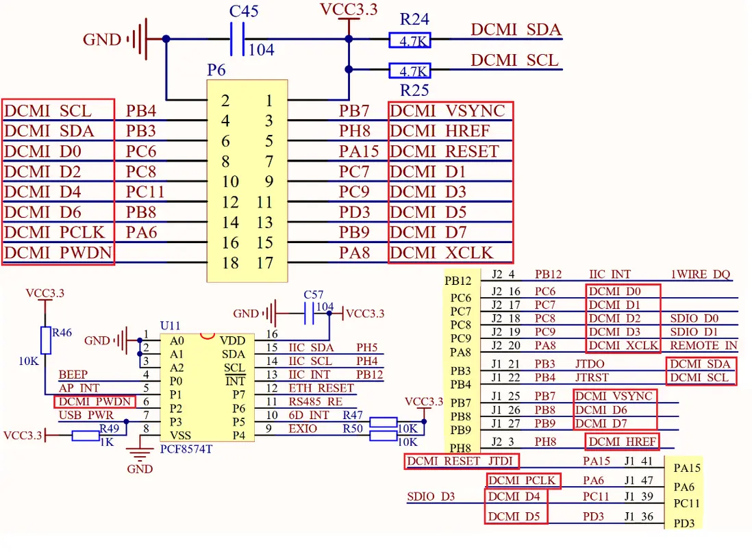 LCD_CAM控制塊CAMERA模塊則用於接收並行視頻數據信號,支持DVP 8-/16-bit模式。DNESP32S3開發闆闆載了一個攝像頭接口(P2),該接口可以用來連接正點原子 OV5640/OV2640/OV7725等攝像頭模塊。本章,我們將使用ESP32-S3驅動正點原子 OV56400/OV2640攝像頭模塊,實現攝像頭功能。
