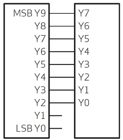 OV5640提供一個10位DVP接口(支持8位接法),其MSB和LSB可以程序設置先後順序,正點原子 OV5640模塊採用默認的8位連接方式,如圖35.1.1.2所示: