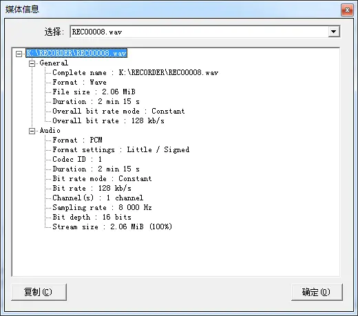 這和我們程序設計時的效果一樣,通過電腦端的播放器可以直接播放我們所錄的音頻。經實測,效果還是非常不錯的。
