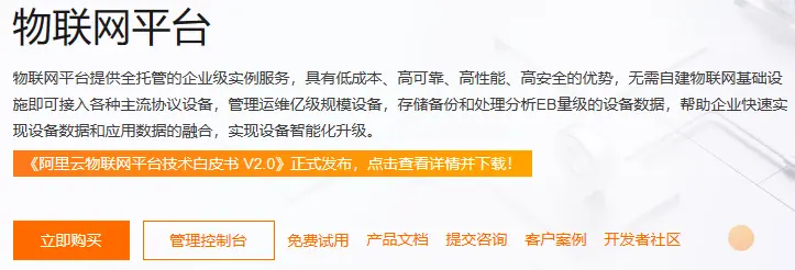 第一步:註冊阿里雲平台,打開產品分類/物聯網/物聯網平台,如下圖所示。