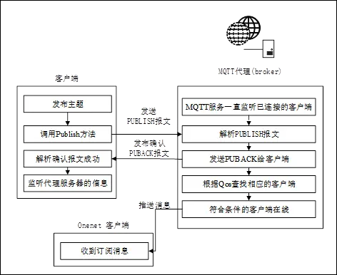 3,當某一客户端發佈一個主題到代理服務後,代理服務先回復該客户端收到主題的確認消息,該客户端收到確認後就可以繼續自己的邏輯了。但這時主題消息還沒有發給訂閲了這個主題的客户端,代理要根據質量級別(QoS)來決定怎樣處理這個主題。所以這裏充分體現了是MQTT協議是異步通信模式,不是立即端到端反應的,如下圖所示: