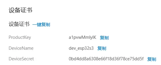 第四步:進入創建的設備,點擊查看三元組內容,如下圖所示。