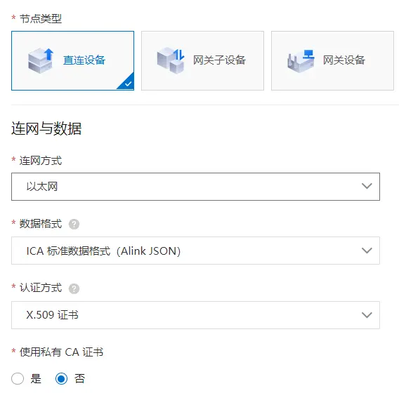 注:上圖中的節點類型、連網方式、數據格式以及認證模式的選擇,其他產品參數根據用户愛好設置。
