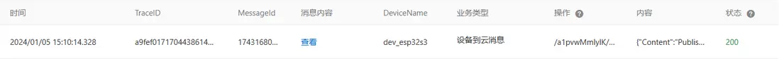 我們可點擊上圖中的查看,可看到設備發佈的消息內容,如下圖所示。