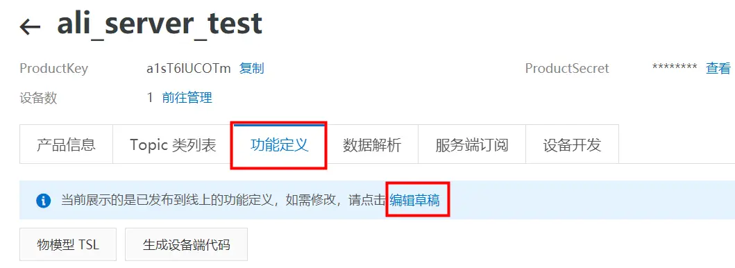 第五步:打開“產品/查看/功能定義”路徑,在該路徑下添加功能定義,如下圖所示。