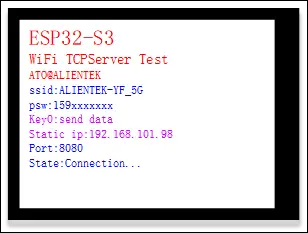 在程序中,首先需要設置好能夠連接的網絡賬號和密碼。然後,使用筆記本電腦作為終端,確保它與ESP32-S3設備處於同一網絡段內。當ESP32-S3設備成功連接到網絡時,它的LCD顯示屏上會顯示相應的內容: