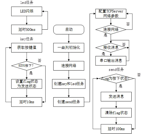 程序流程圖能幫助我們更好的理解一個工程的功能和實現的過程,對學習和設計工程有很好的主導作用。下面看看本實驗的程序流程圖: