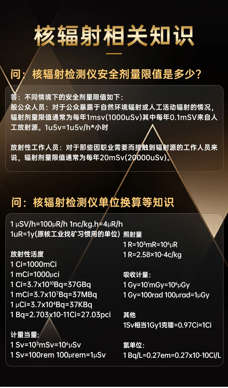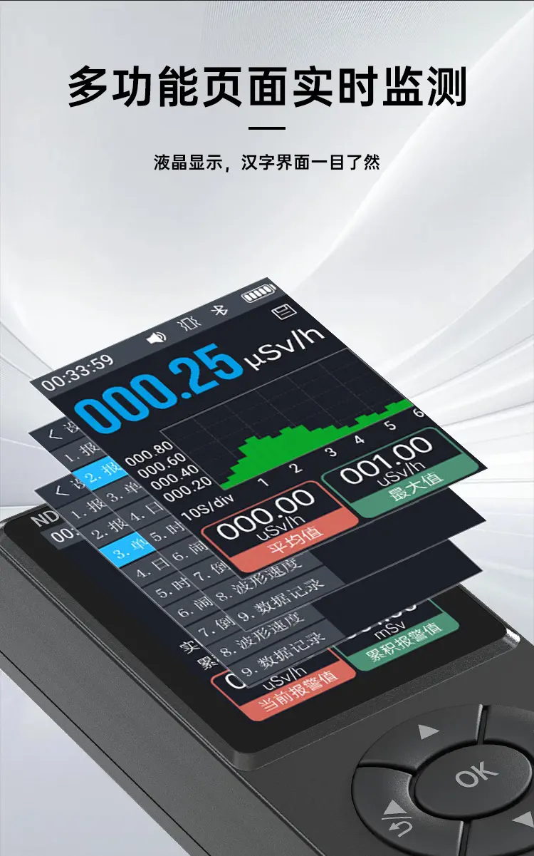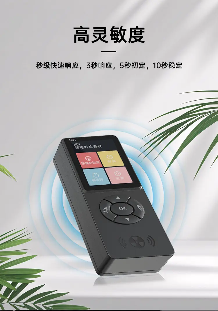 適用範圍廣,功能豐富,一機多用,可玩性高;深圳計量院校準證書,權威機構檢測認證;高靈敏J321大蓋革管,準確可靠;ND1支持約100萬個輻射值記錄,U盤數據導出,方便分析;支持手持感應功能,方便好用;報警方式與閾值可調,不錯過危險警告;支持倒計時功能,3D感應,方便使用。
