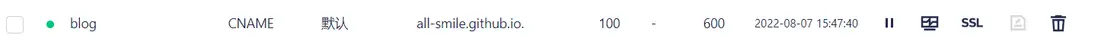 我個人購買的一級域名是 i-xiao ,域名後綴是 space,專門給GitHub Pages 增加一個CNAME記錄(blog),解析二級域名,綁定 <username>github.io 域名。