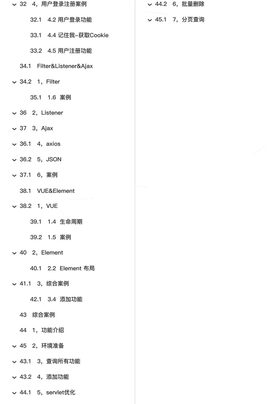 🏆🏆🏆教程全知識點簡介:MySQL基礎 1,數據庫相關概念 2,MySQL 3,SQL概述 4,DDL:操作數據庫 6,navicat使用 7,DML mysql高級 1,約束 2,數據庫設計 創建部門表 4,事務 JDBC 1,JDBC概述 2,JDBC快速入門 3,JDBC API詳解 4,數據庫連接池 Getting Started Mybatis練習 1,配置文件實現CRUD HTML&CSS 1,HTML 2,CSS JavaScript 5,BOM 9,RegExp對象 HTTP&Tomcat&Servlet 1,Web概述 2, HTTP 3, Tomcat 4, Servlet 一、狀態碼大類 二、常見的響應狀態碼 Contributing to Apache Tomcat Code of Conduct How Can I Contribute? 1,Request和Response的概述 2,Request對象 JSP 3,JSP 原理 5,EL 表達式 6,JSTL標籤 會話技術 1,會話跟蹤技術的概述 2,Cookie 3,Session 4,用户登錄註冊案例 Filter&Listener&Ajax 1,Filter 2,Listener 3,Ajax 4,axios 5,JSON 6,案例 VUE&Element 1,VUE 3,綜合案例 1,功能介紹 2,環境準備 3,查詢所有功能 4,添加功能 6,批量刪除 7,分頁查詢