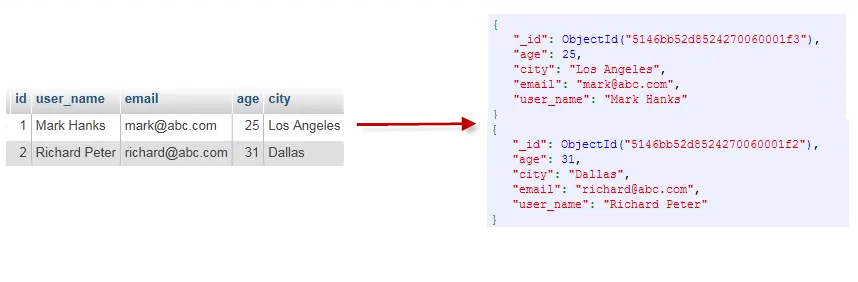 db.user.insert({id:1,username:'zhangsan',age:20})