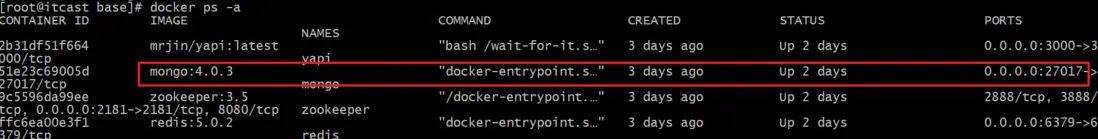在資料的虛擬機中已經提供了MongoDB的鏡像和容器, 只需要使用簡單的命令即可啓動
