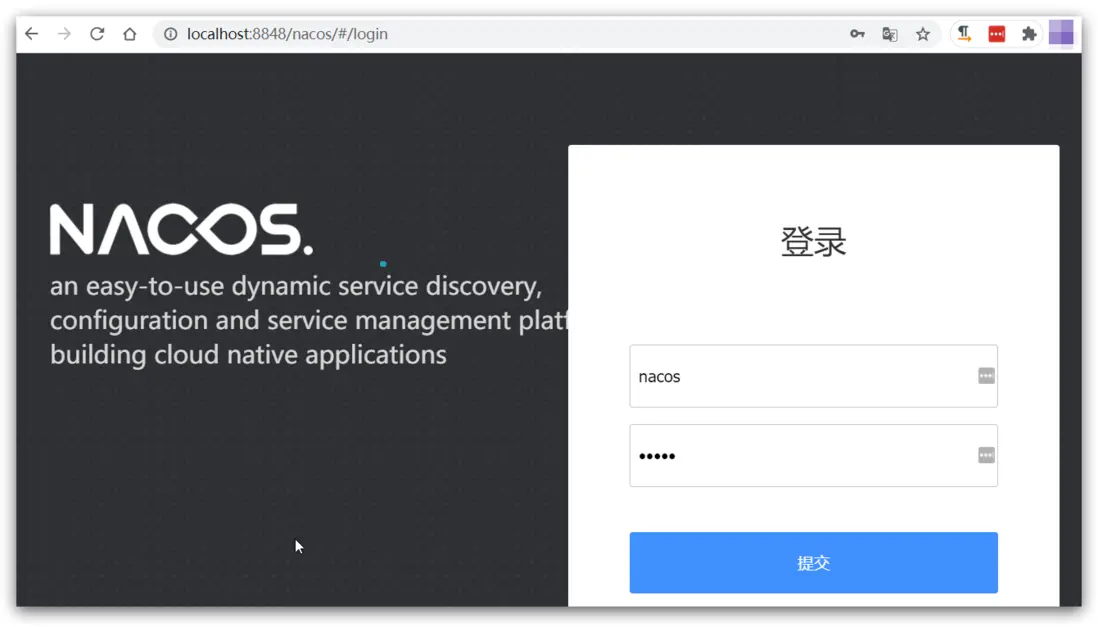 在瀏覽器輸入地址:http://127.0.0.1:8848/nacos即可: