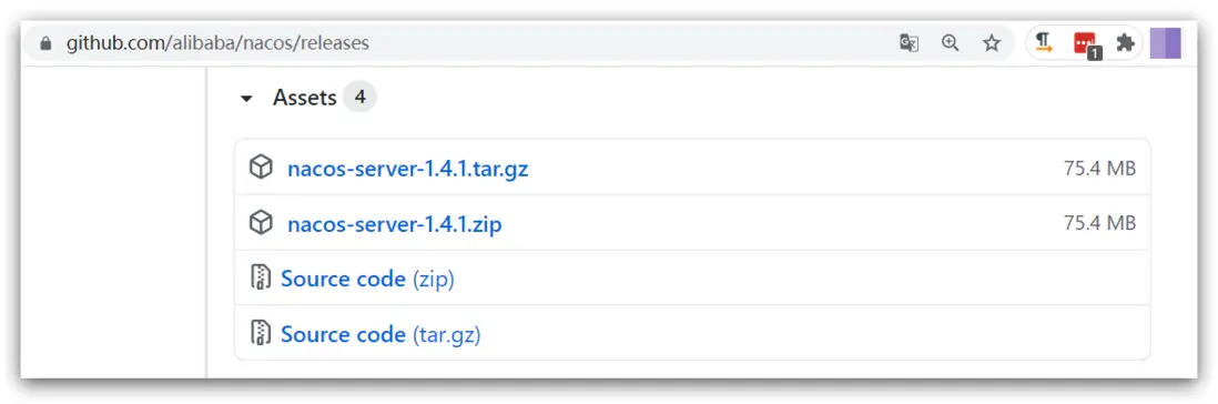 GitHub的Release下載頁:https://github.com/alibaba/nacos/releases